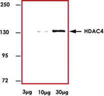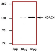 The antibody recognizes human HDAC-4. It may cross-react with HDAC-4 from other species.