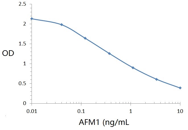 OD50 ELISA titer for AFM1-HRP is approximately 0.05-0.1 ug/mL in plate immobilized with 0.25 ug /mL of rabbit anti-AFM1 (ICP1798). OD signal was 50% inhibited by 1 ng/mL of free AFM1