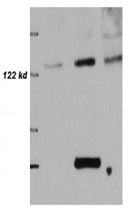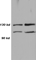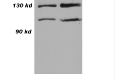 Western blot analysis of 293 cell lysate 10 μg (left) and 30 μg (right) with CN0835.