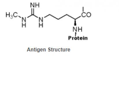 The antibody recognizes free mono-methyl arginine and proteins with methylated arginine residues. It does not cross react with either asymmetric or symmetric dimethyl arginine.