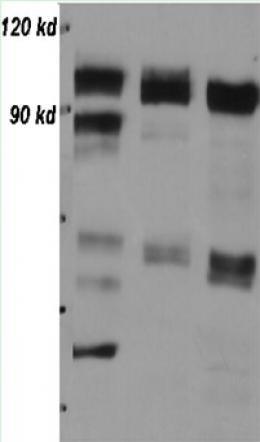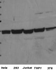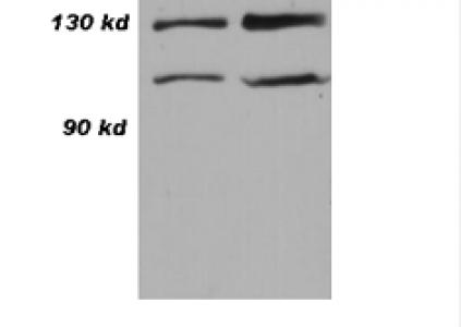 Western blot analysis of 293 cell lysate 10 μg (left) and 30 μg (right) with CN0840.