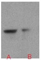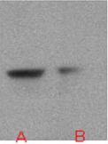 Western blot analysis of the extract from mouse spleen and human lump using ICP6015 with (A) and without (B) competitive antigen peptide.