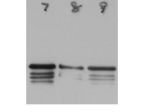 Western blot analysis of cell extract with Flg-tag protein expression (lane 7 = 25 μg; lane 8 = 5 μg; lane 9 = 10 μg cell lysate).