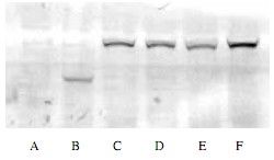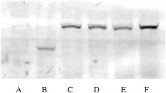 Western blot analysis of the cell extract with expression of HA-tag proteins (B-F) and without expression of HA (A).