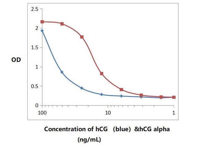 Antigen-Capture ELISA using anti-hCG alpha antibody (ICP1998) and ant-hCG alpha antibodyHRP (ICP1999)